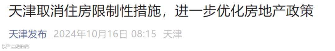 10月16日,“天津发布”公众号发布了《天津市人民政府办公厅转发市住房城乡建设委等六部门关于进一步优化房地产政策更好满足居民合理住房需求若干措施的通知》。