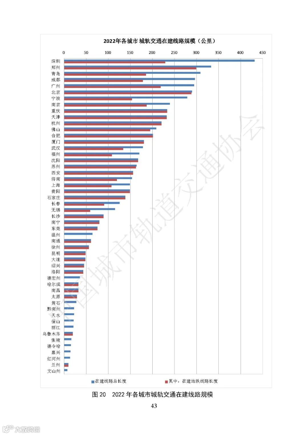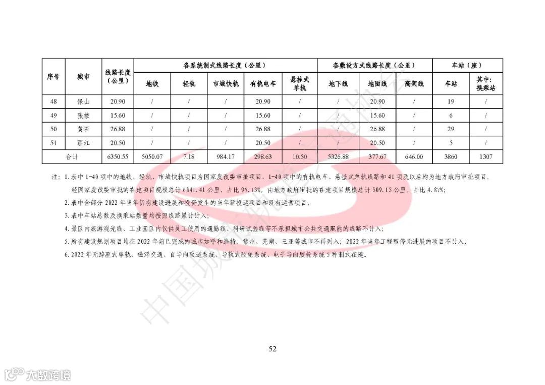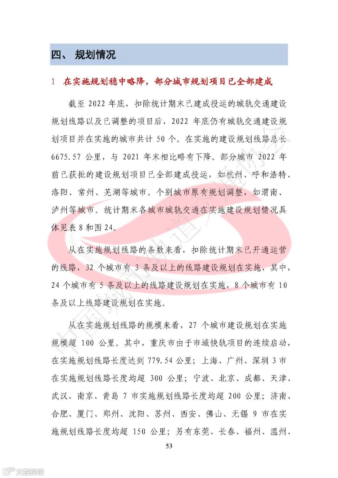 截至2022年底,城轨交通线网建设规划在实施的城市共计50个,