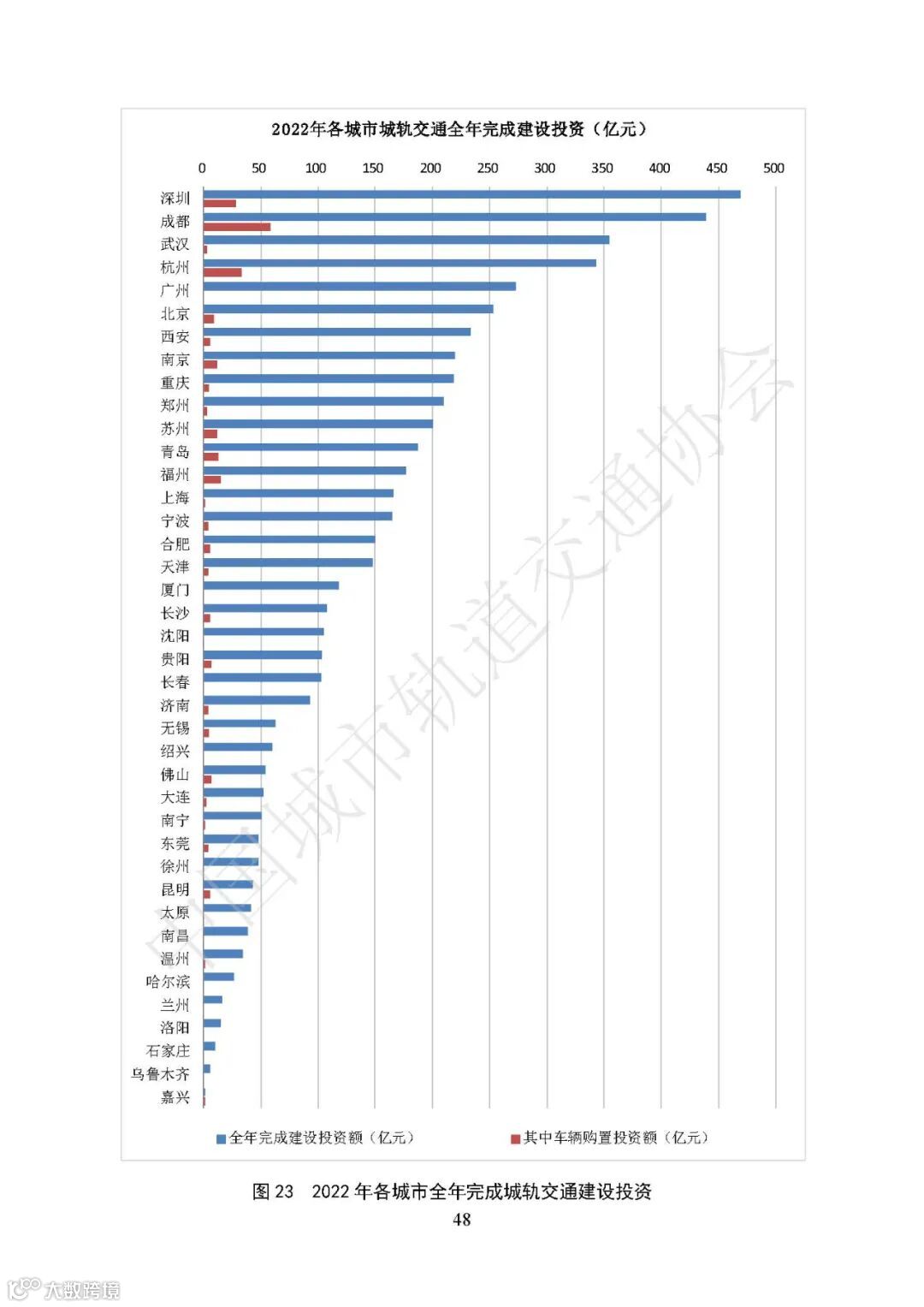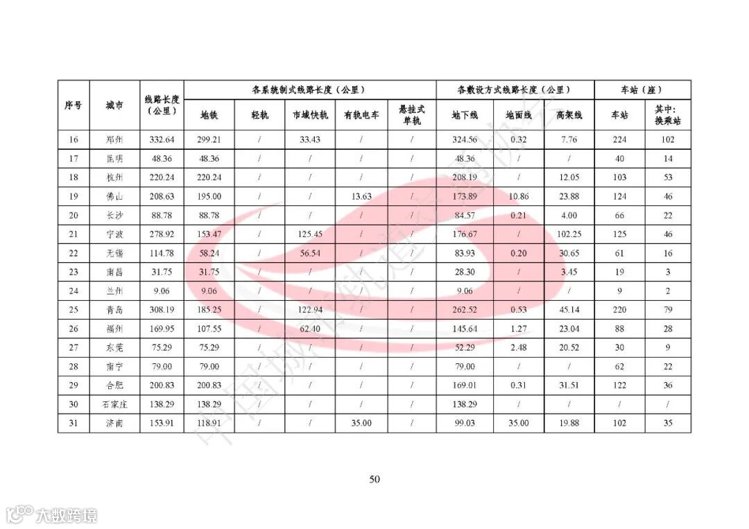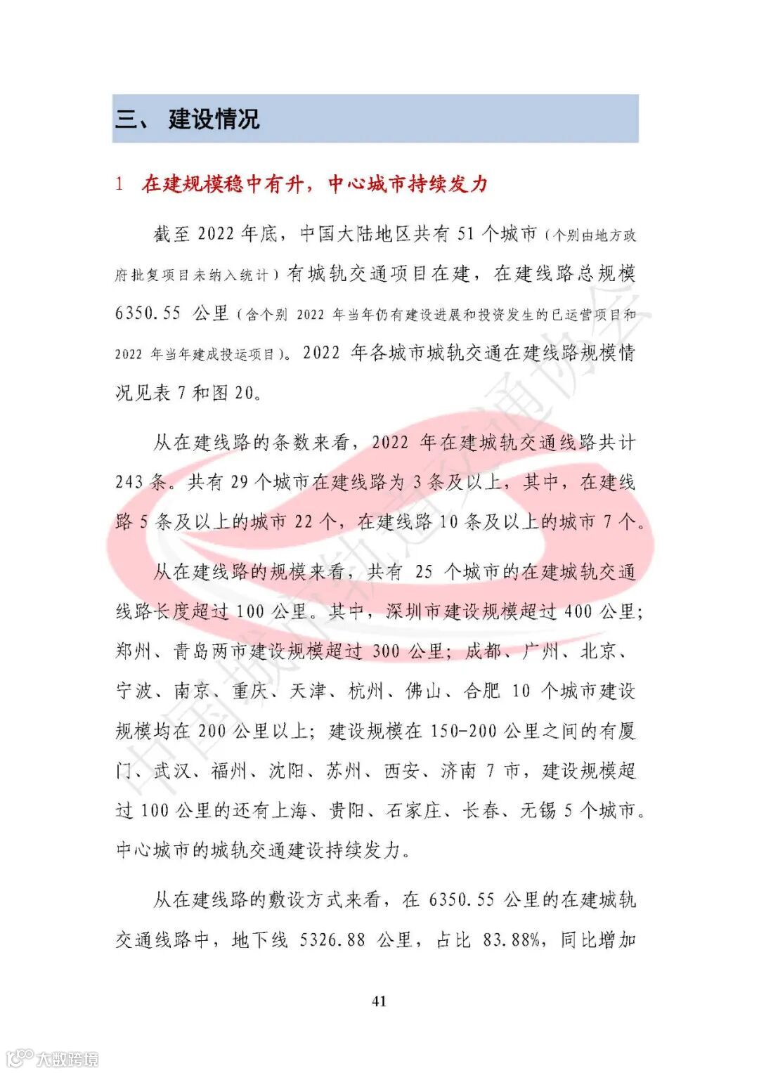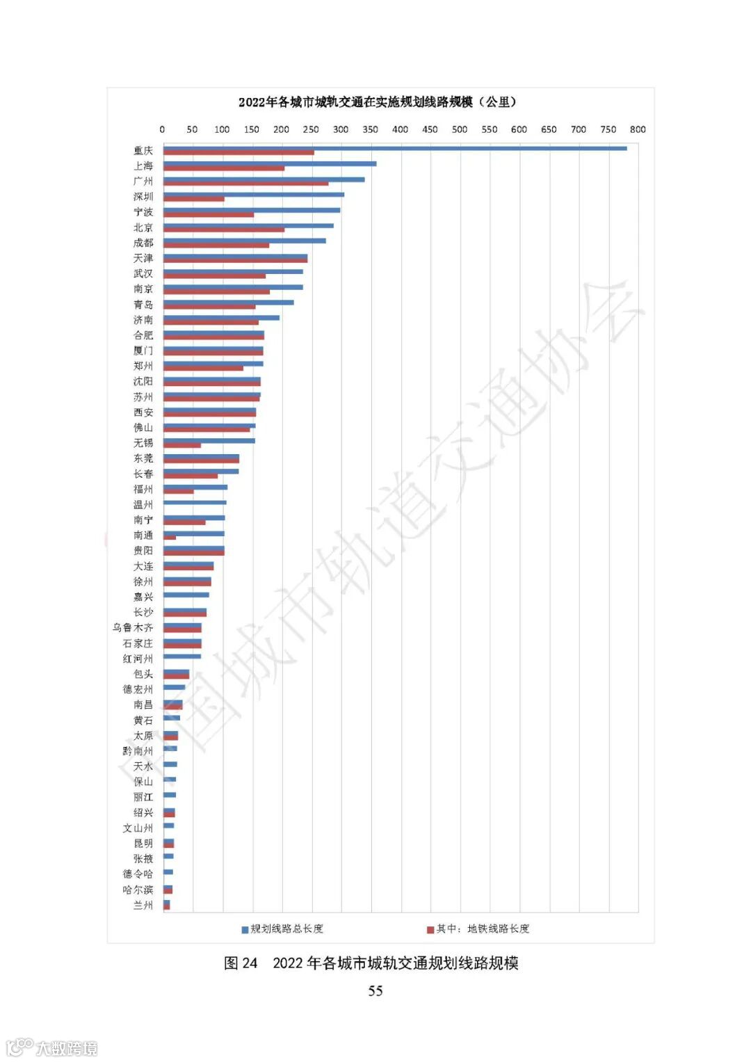 截至2022年底,城轨交通线网建设规划在实施的城市共计50个,