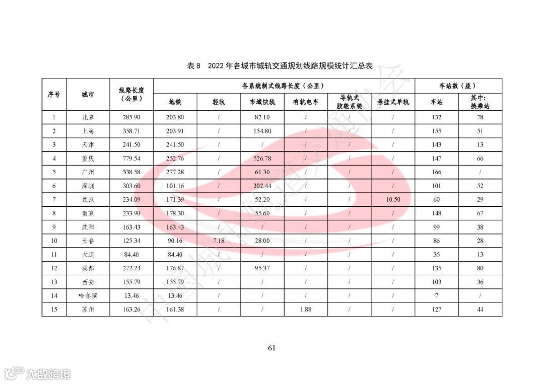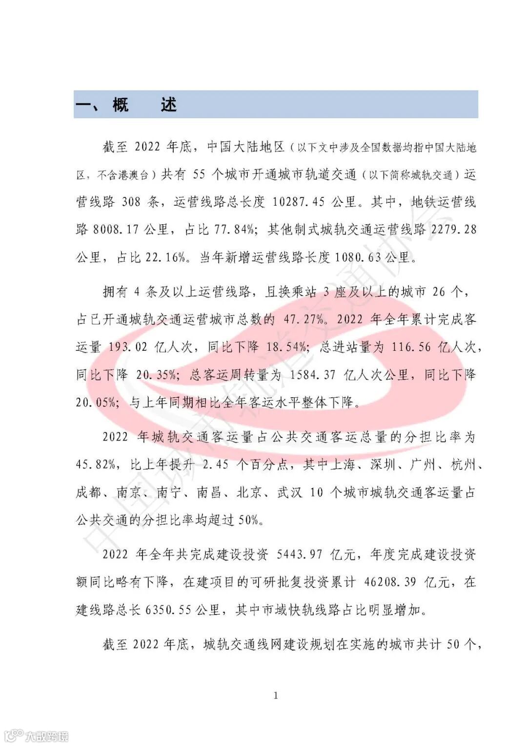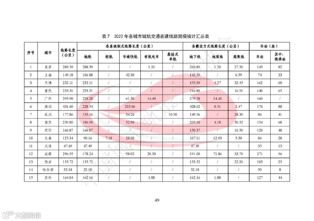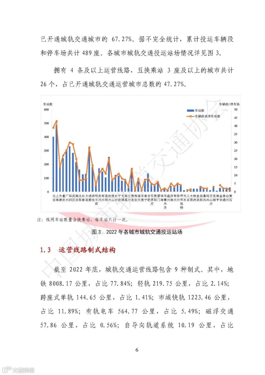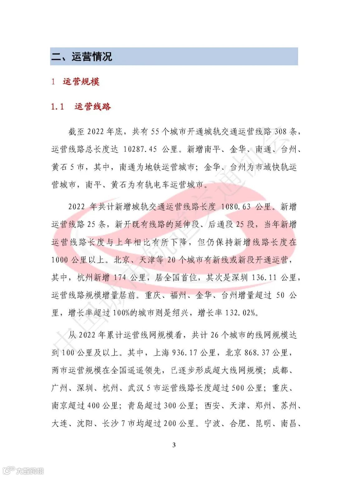 10287.45公里丨城市轨道交通2022年度统计和分析报告