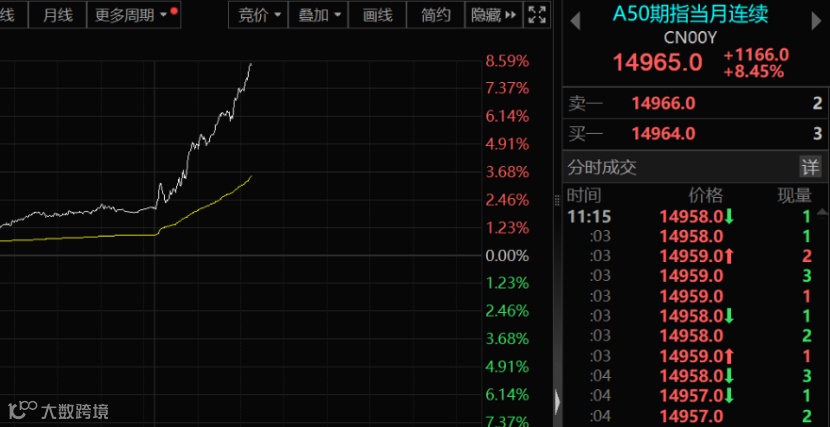 另外,富时中国A50指数期货涨幅超过8%。