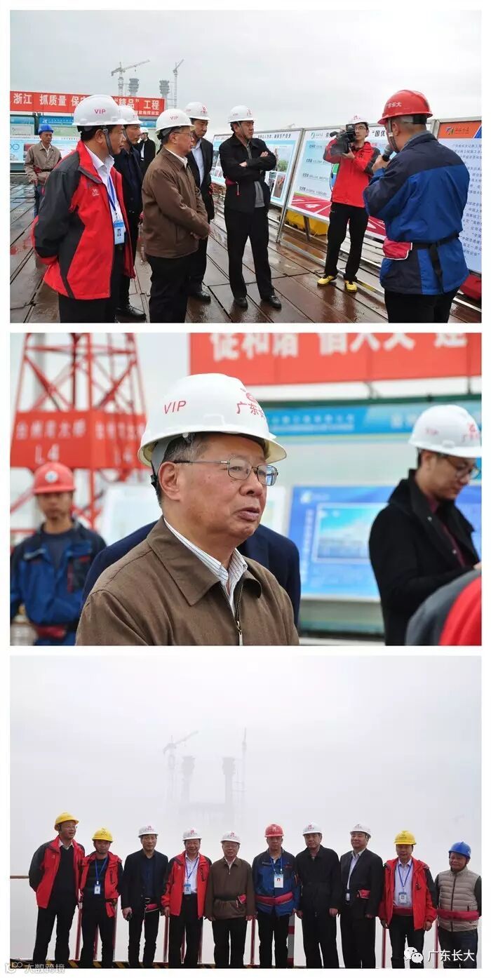 近日,交通部原部长黄镇东到广东省长大公路工程有限公司施工的台州湾跨海特大桥TS09标项目部调研,省公路管理局局长洪秀敏、市交通运输局局长黄继满等陪同调研。