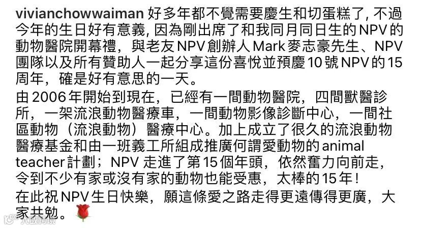周慧敏在文案中只是浅浅提了一嘴今天是自己的生日,还表示自己已经多年没有过生日和切蛋糕了,不知道是对年龄增长太过敏感还是本性淡然。