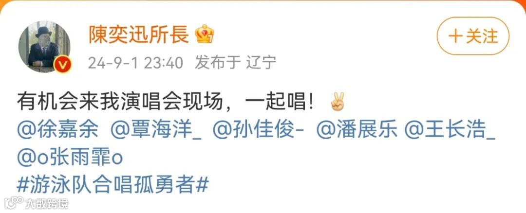 《孤勇者》的原唱陈奕迅则邀请运动员们来演唱会一起唱。