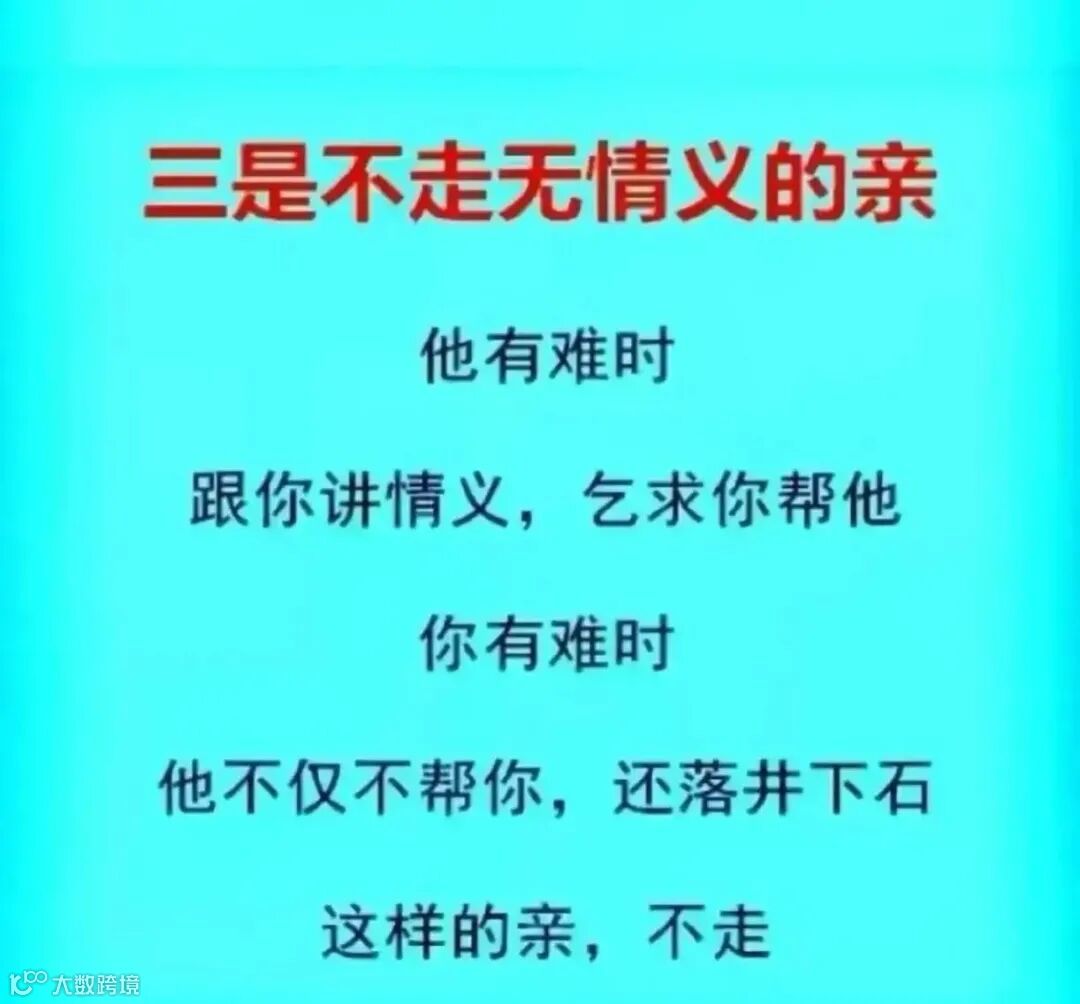 因此,这样无情义的人,一定记得要远离,不能被甜言蜜语所迷惑,不能被一点利息所诱惑。否则,后悔晚亦。他不仅不会帮你,甚至是落井下石,恩将仇报!你说可怕吧!这样的亲戚还能来往吗?