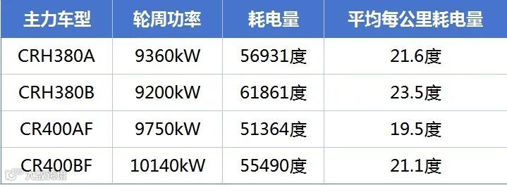 “中国高铁动车组一公里耗一万度电”的说法偷换了概念,与事实不符。以现有CRH380A、CRH380B、CR400AF、CR400BF等4个8编组的主力车型为例,其轮周功率分别为:9360kW、9200kW、9750kW、10140kW,通过在京沪高铁(往返距离2636公里)达速350km/h运行条件下的能耗测试数据显示,其耗电量分别为:56931度、61861度、51364度、55490度,据此推算出平均每公里耗电量分别为:21.6度、23.5度、19.5度、21.1度。