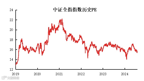 业内人士分析认为,经过两年的调整,A股估值已处于历史相对低位。当前,中证全指指数PE(TTM)为15.7,处于2020年以来的9.8%分位数。理性来看,当下A股下行风险较小,但估值修复空间大,中长期性价比凸显。