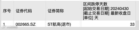 8月26日,ST航高(002665)正式终止上市并被摘牌。