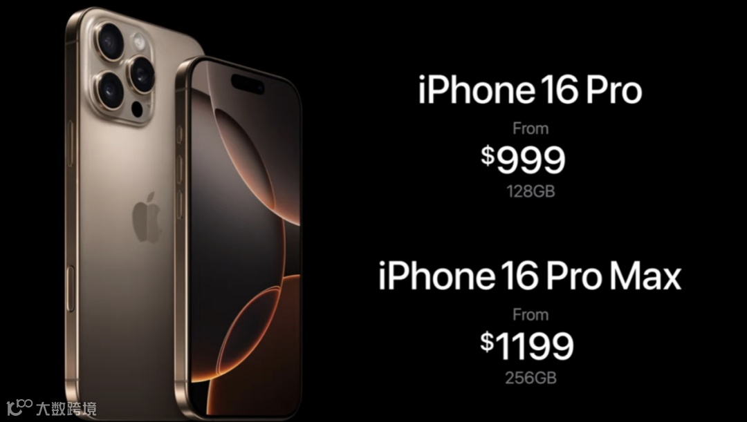 iPhone 16 Pro起售价999美元,Pro Max起售1199美元,与上一代持平。本周五开始接受预订,9月20日发售。