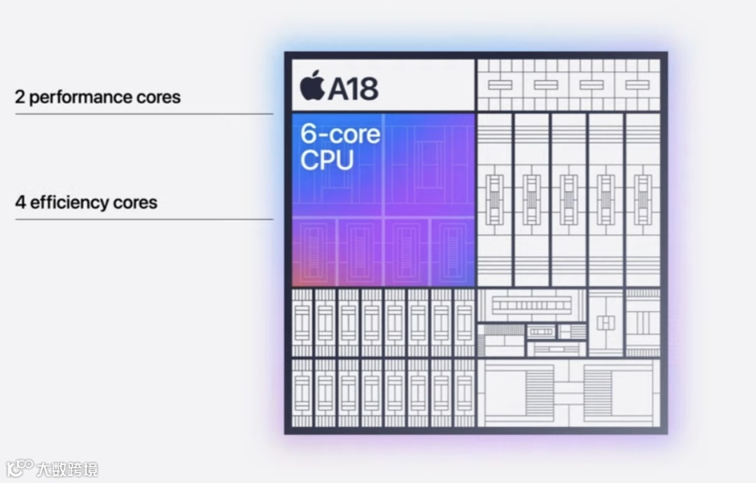 具体来看,基本款iPhone 16搭载的全新A18芯片采用3纳米技术,其六核CPU有两个高效能核心和四个效率核心。A18的CPU比iPhone 12的CPU快60%,这一速度足以挑战高端台式电脑,它的五核GPU比iPhone 15的快40%。用新手机打游戏时,该芯片可将持续性能提升高达30%。