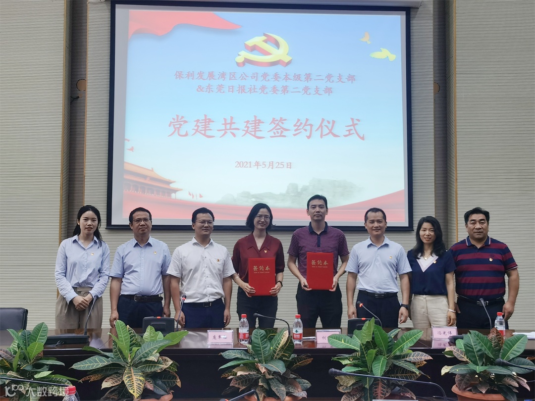 5月25日,保利湾区公司本级第二党支部与东莞日报社党委第二党支部在东莞展览馆举行党建结对共建签约仪式。东莞日报社党委副书记、副社长余映涛,东莞日报社党委第二党支部书记柯凯,湾区公司本级第二党支部书记庞翠钰,委员付军、云玲娟等同志参加活动。