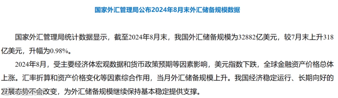 刚刚,国家外汇管理局(下称“外汇局”)发布2024年8月末外汇储备规模数据。