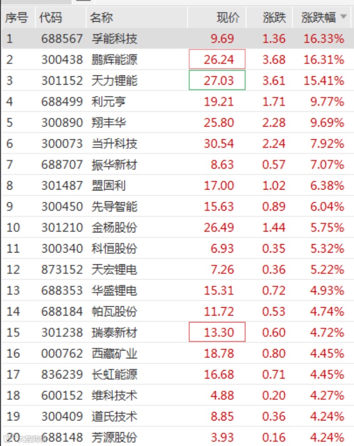 锂电池板块今日早盘表现活跃,其中固态电池板块相关个股的表现更为强势。截至发稿,孚能科技、鹏辉能源、天力锂能涨超15%,利元亨、翔丰华、当升科技等多股大涨。
