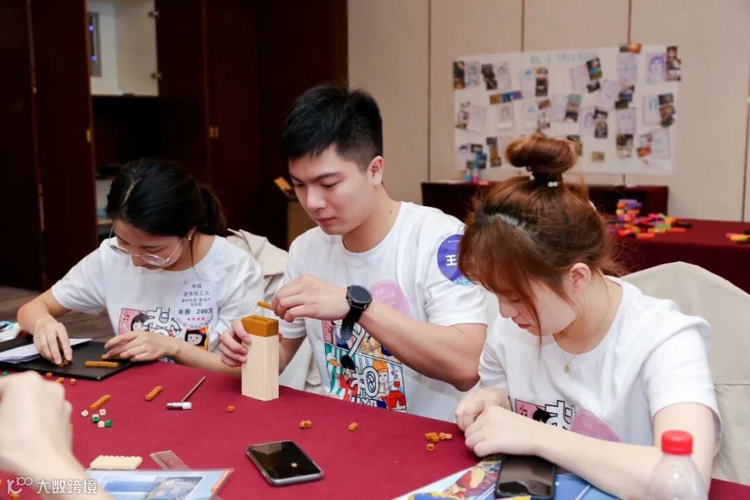 经过积木搭建的比拼,各组学员获取了项目建造的材料,并建造了属于自己的“大楼”。