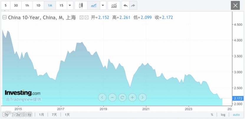 今年以来,国债收益率持续较快下行,中国10年期国债收益率一度创20年来新低,截至发稿,中国10年期国债收益率报2.172%,仍处于低位。