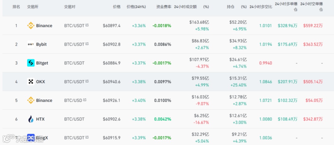 从整个加密货币来看,虽然表现没有那么强劲,但比特币这个最大的品种却出现了明显异动。数据显示,比特币各大品种一度涨幅都超过了3%,重回6万美元以上水平,随后涨幅有所回落。