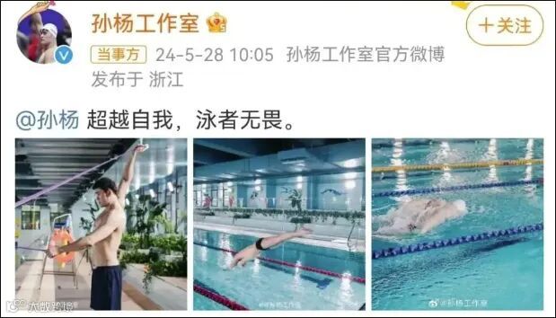 今年5月28日,孙杨结束了4年零3个月的禁赛,这标志着他泳池竞技生涯的重新开启。当天,孙杨工作室发文:“超越自我,泳者无畏”。