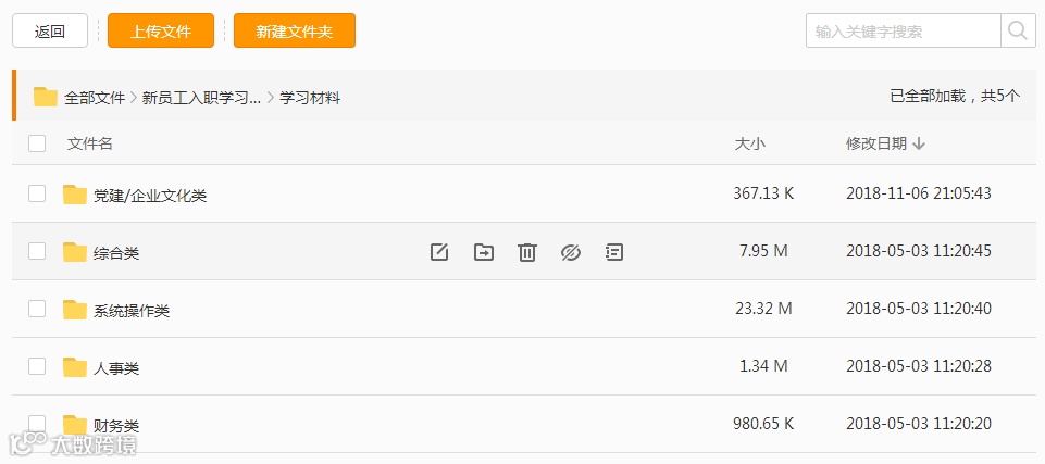 将党建知识、企业文化知识、办公室管理、档案管理、财务报销、人事管理制度以及明源和OA系统操作流程,作为线上学习资料,通过企业微信移动学习平台让新员工们进行前置学习,并以线上考试的形式,实现新员工对公司相关制度规定博闻强记的培训目的。