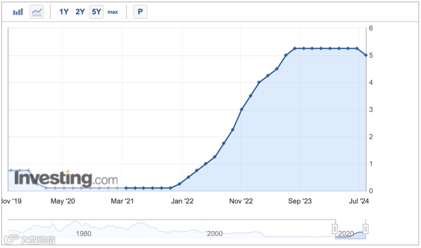 北京时间8月1日晚间,英国央行宣布,降息25个基点至5.00%。英国央行表示,货币政策委员会(MPC)5人投票支持降息,4人投票支持维持利率不变。这是2020年3月以来英国央行的首次降息,符合市场预期。