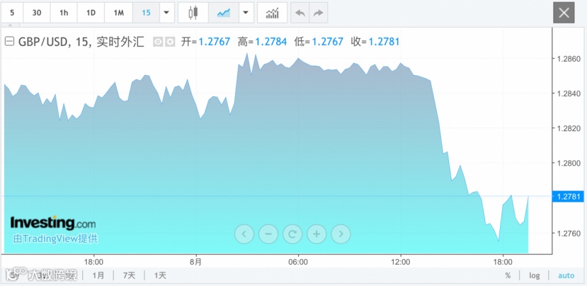 英国央行宣布降息后,英镑兑美元汇率短线走低,现报1.2781;英国10年期国债收益率短线小幅走低,现报3.9615%。