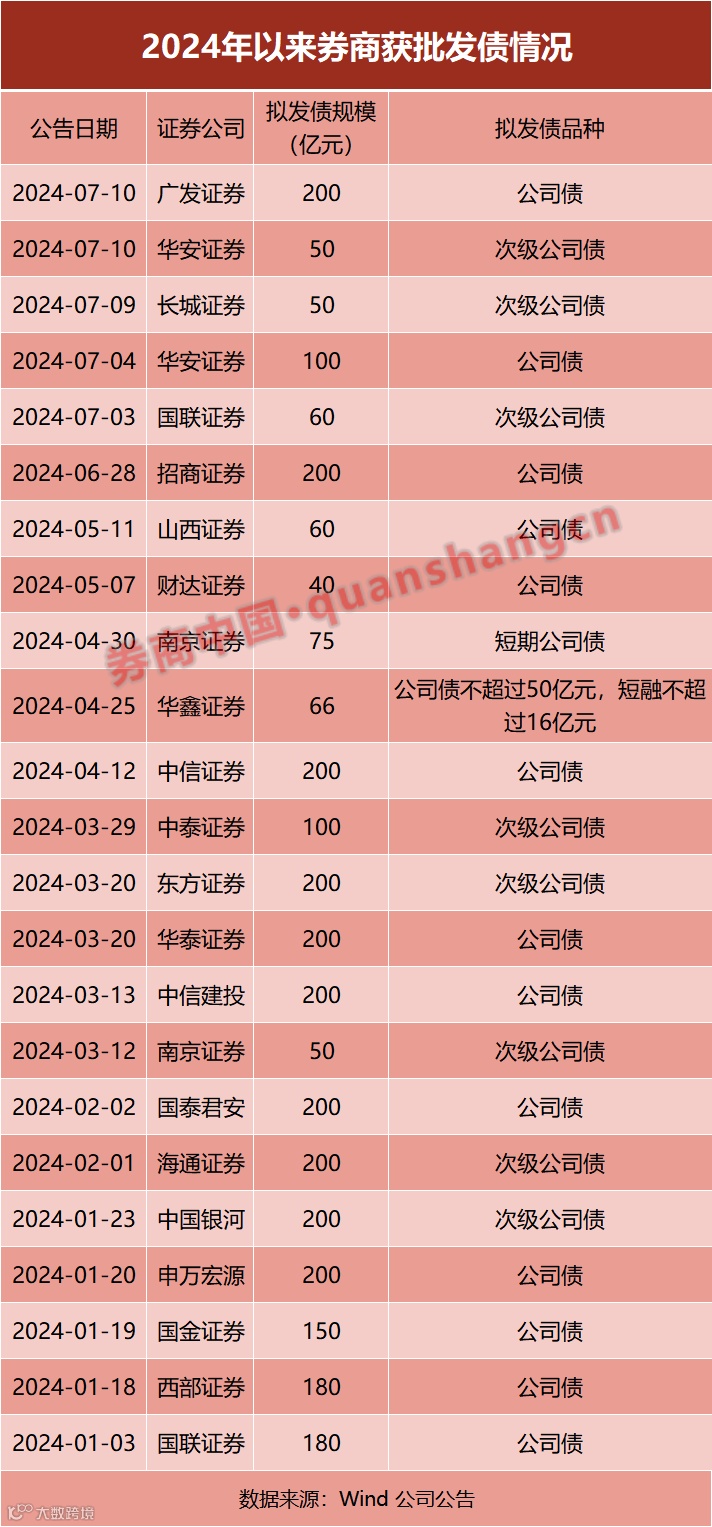 相对来看,今年申请发债的中小券商明显多了。山西证券、西部证券、财达证券等中小券商的发债申请相继获得证监会的注册批复,华安证券、国联证券、南京证券更是两次获批。而上年同期,14家获批发行债券的券商中,以大型券商居多,比如中金公司、华泰证券、国泰君安获批发债次数在2到3次。