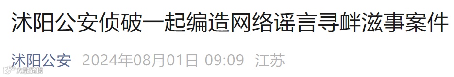 沭阳公安侦破一起编造网络谣言寻衅滋事案件
