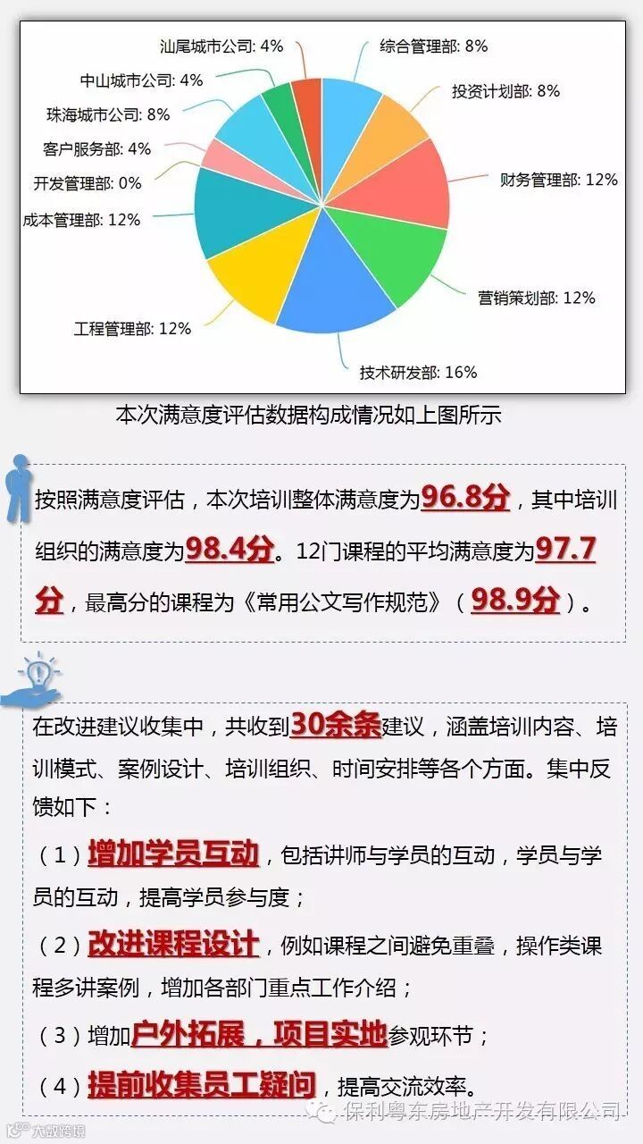 目前,公司人才培训与发展正从“从无到有”阶段不断完善发展。未来,我们也将按照人才管理一体化方向努力,逐步开展公司人才培养工作,助推公司发展,助力员工成长。