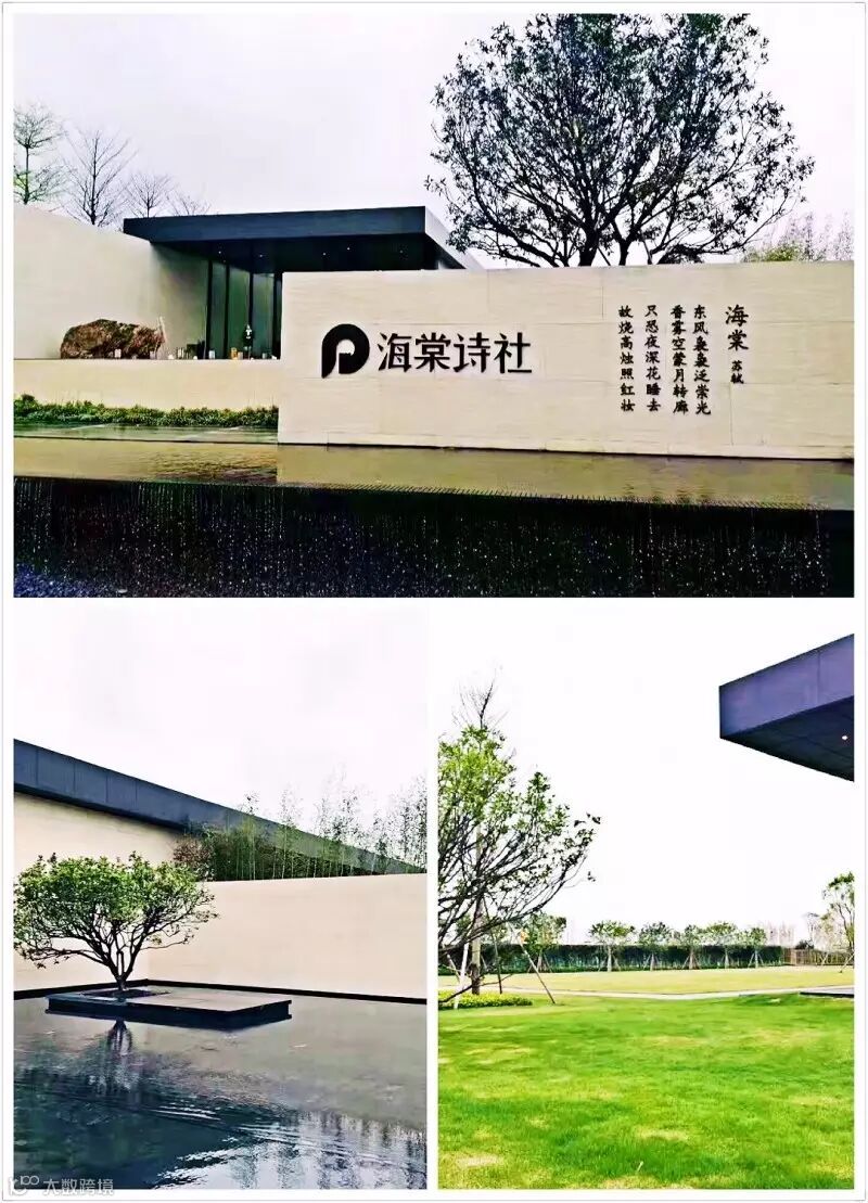 步入销售中心,一股诗意的气息扑面而来,入口处“海棠诗社”的题词,以及树木宛在水中央的意境令人心旷神怡、陶醉不已。