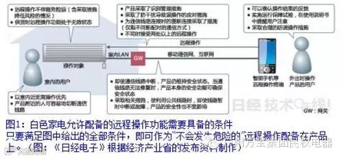 据日经BP社报道,日本去年修改了远程操作电器的安全标准。此次修改标准后,用户就能够在外出时使用智能手机等终端对白色家电进行远程打开开关等操作。作为HEMS(家庭能源管理系统)的卖点之一,家电远程操作功能的实现有望促进HEMS的普及。
