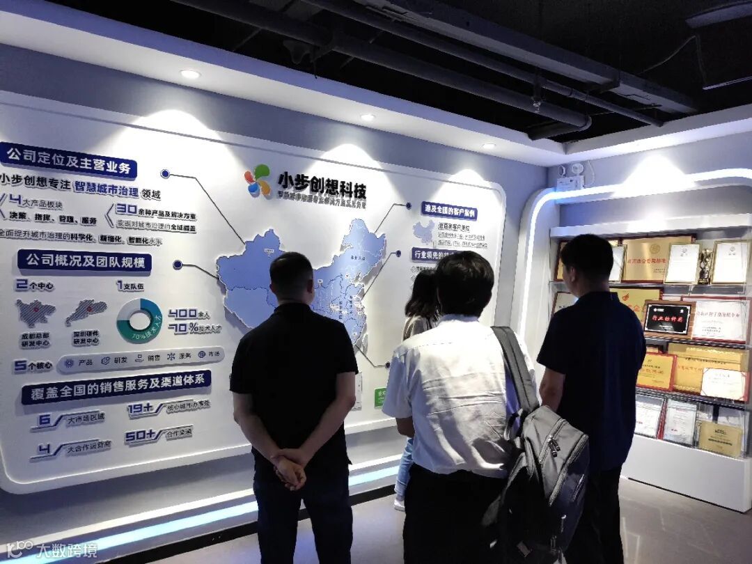 王燕波、胡大奎二人在小步创想董事长助理杨小刚的陪同下,先后参观了公司办公环境与智慧城管科技展厅,对小步创想的企业概况进行了初步了解。