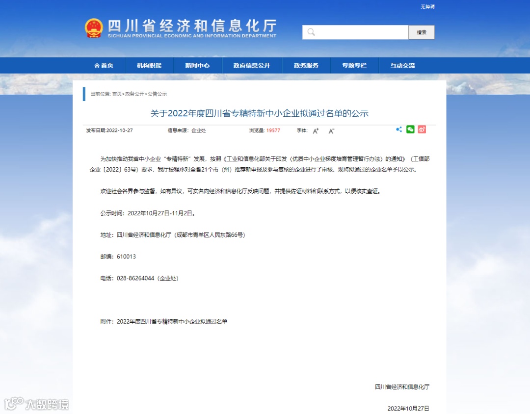 日前,四川省经济和信息化厅发布《关于2022年度四川省专精特新中小企业拟通过名单的公示》,目前公示期已结束,入选名单正式确认,小步创想榜上有名!