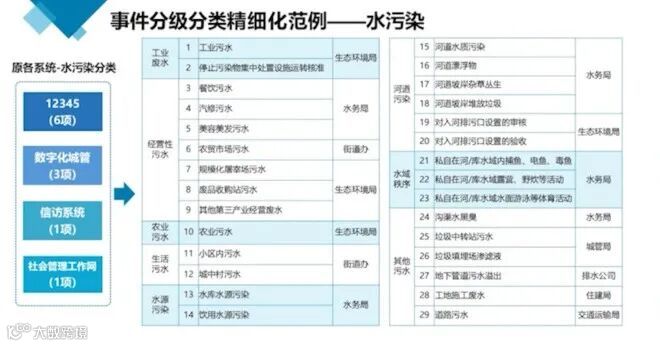 以水污染问题为例,城市管理局收到的问题只要三个是属于水污染,但整合所有渠道信息后发现,老百姓认为属于水污染问题的有29条,这29条涉及到城市管理、生态环境局、水务局、街道办、排水公司、住房和城乡建设局、交通运输局等,这就需要所涉部门合力处置,才能有效解决水污染问题。