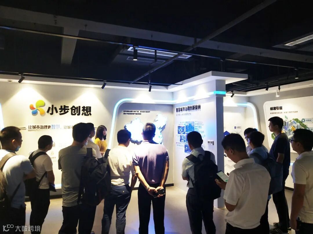 海康威视销售团队一行人首先参观了小步创想智慧城市科技展厅,展厅讲解人员向来宾介绍了小步创想的企业实力及业务发展的综合概况。