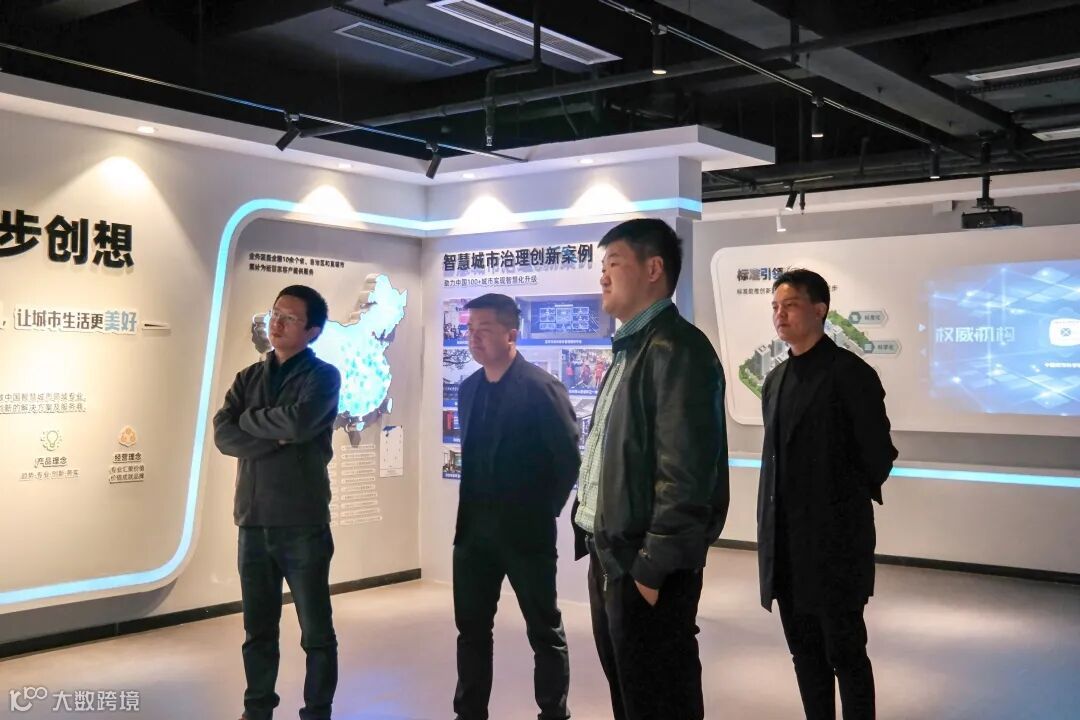 张亮、刘长伟二人首先参观了智慧城管科技展厅,展厅讲解人员为他们介绍了公司概况及有关产品,并在屏幕上对相关系统进行了演示。在参观过程中,华为方就一些产品细节与我方进行了愉快的交谈。