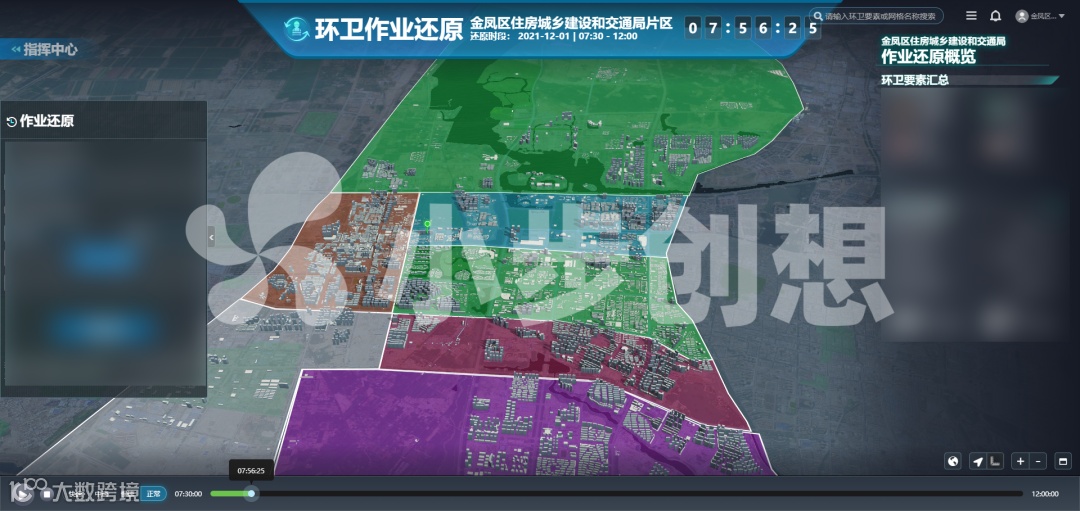 为实现环卫作业的精细化管理,金凤区结合实际需要,在平台的综合指挥中心界面,搭建了一个作业还原面板。即使错过了人员的实际作业时间,也可通过该面板,对环卫人员前一天的工作情况进行回溯、追踪,并将此作为考核依据,反馈给环卫公司。