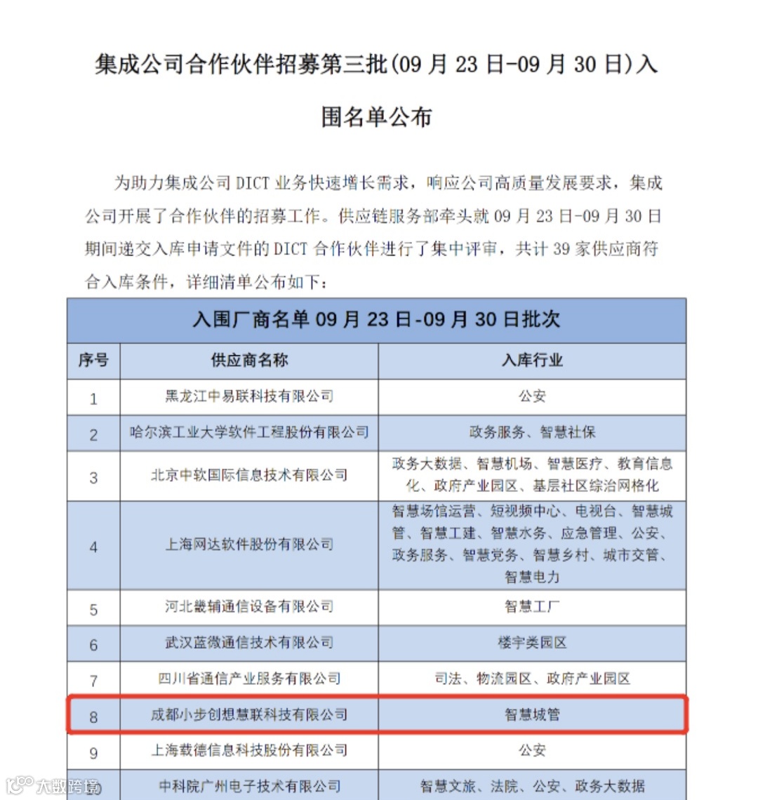 近日,中移系统集成有限公司公布了2022年第三批DICT合作伙伴入围名单。