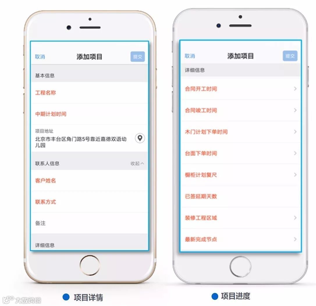 员工或者领导想要随时随地查看某个项目的资料及项目进度时,没有电脑无法进行查询;并且员工每天在项目上都需要去给装修的各个环节进行检查,包括其装修进度、装修质量、装修测量、材料等等情况。拍摄取样的照片通过微信进行回传给领导,无法进行分类存储,全都需要人员自己进行手工归纳整理。