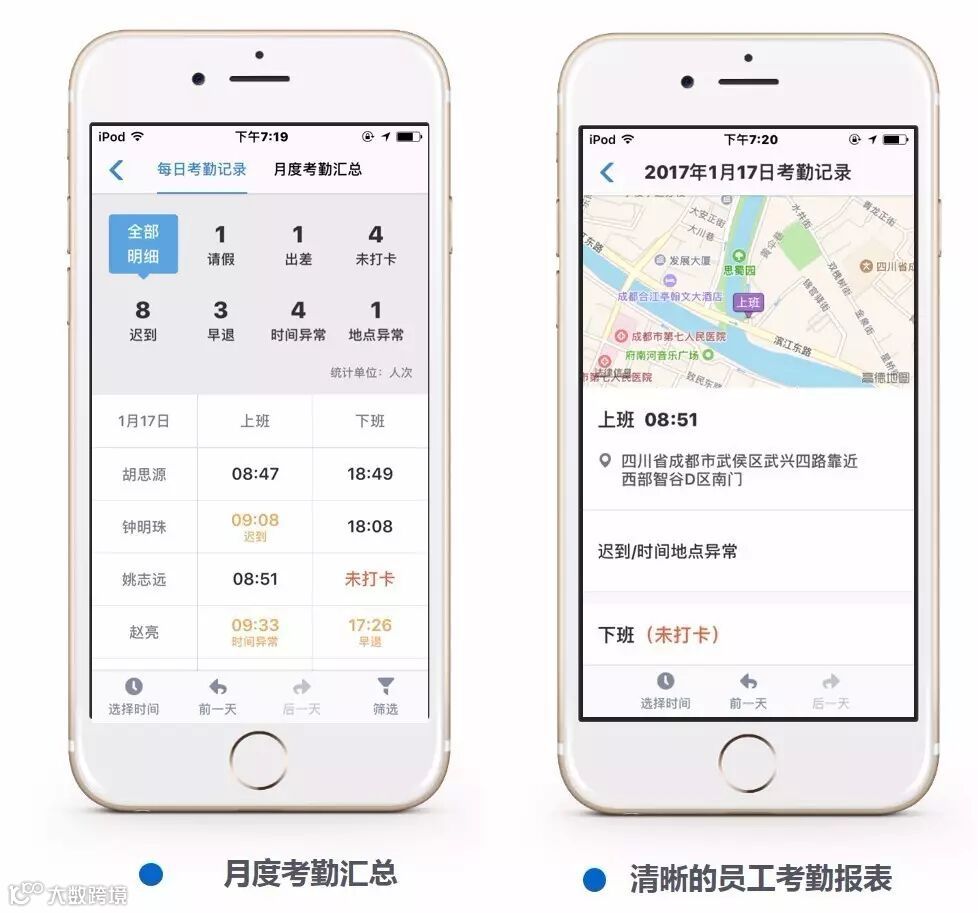 1、手机移动打卡+工作轨迹+管理报表