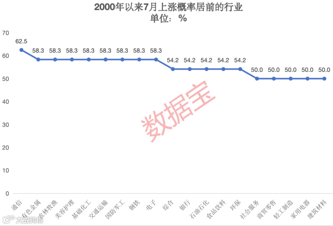 有色金属等行业7月上涨概率超55%