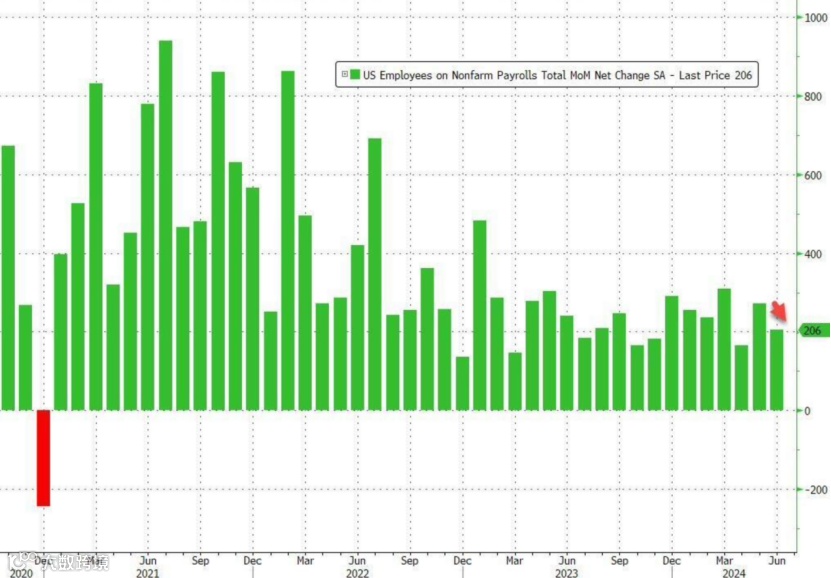 其实,在这份非农报告公布前夕,其他关键指标均暗示,6月劳动力市场将出现明显的松动。