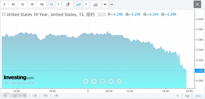 同时,美国2年期、10年期、30年期国债收益率全线走低,10年期美债收益率一度跌超1.2%,现报4.299;美元指数亦持续走低,日内跌0.17%。