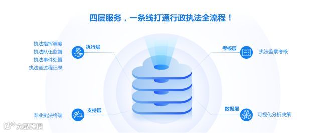 通过构建考核层、执行层、数据层、支持层“四层服务”结构,并借助民众接受度最高的微信平台扩展公众服务平台,一条线打通综合行政执法全流程,全面提升精细化、智能化水平!