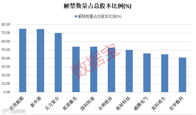 从解禁比例来看,世茂能源、新中港、天力复合等7股解禁比例较大,均超50%。内蒙一机、恒玄科技、高新发展的解禁比例较小,均不到0.1%。