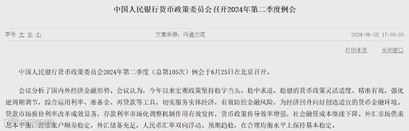 本次例会继续强调,要进一步加强部门间政策协调配合,强化政策统筹,充分发挥货币信贷政策效能,兼顾好内部均衡和外部均衡。切实增强经济活力、防范化解风险、改善社会预期,巩固和增强经济回升向好态势,持续推动经济实现质的有效提升和量的合理增长。