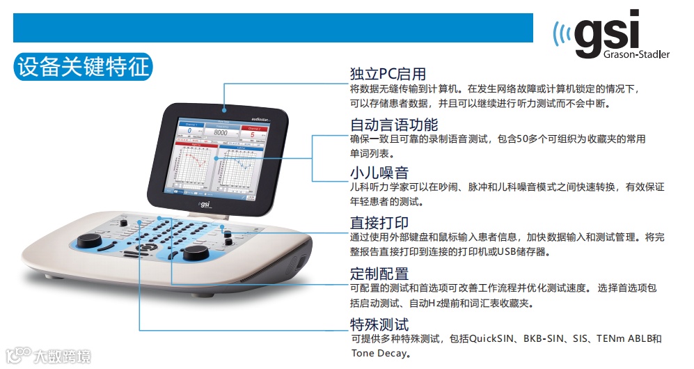 GSI AudioStar Pro是GSI 61的全新升级版,在继承了GSI 61的优点上,优化了设计语言,小巧且强大,是听力检查设备的明星产品。