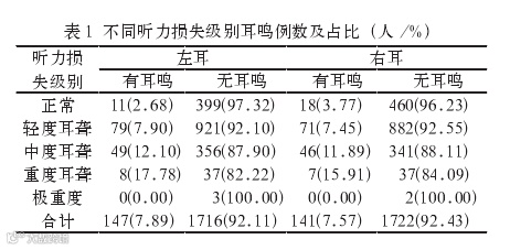 进行纯音测听检查,诉及持续耳鸣患者进行耳鸣匹配检查,使用SPSS软件分析数据。