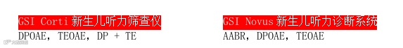 美国GSI公司针对新生儿听力筛查项目所需,研发推出了 GSI Corti新生儿听力筛查仪,以及GSI Novus新生儿听力诊断系统,能够快速高效的对新生儿的听力进行筛查,满足新生儿所需的耳声发射、自动听性脑干反应和声阻抗等电生理学检测等测试。便携式的设计,简便的操作,可靠,准确,简单,快速,清晰的导航和数据收集。