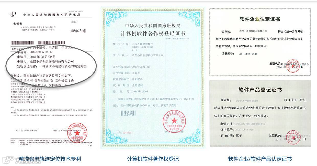 三是,专利技术的领先。小步外勤研发出了业内首个且唯一的定位专利技术——“一种移动终端出行轨迹的确认方法”,攻克了业内公认的两个技术难题: