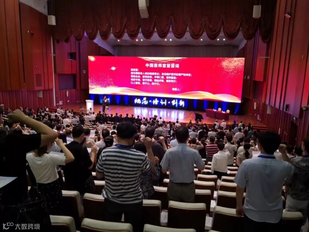 今年正逢建国70周年之际,为弘扬爱国主义精神,不忘初心,牢记使命,会议特设立全体起立唱国歌环节,随后主持人带领会场全体医务人员进行中国医师宣誓。在场的每一位医师高举右手庄严宣誓:我志愿献身人类的健康事业,自觉维护医学的尊严和神圣,敬佑生命,救死扶伤,平等仁爱,尊师重道;诚实守信,恪守医德,精益求精,慎思笃行;以上誓言,源于心,践于行。