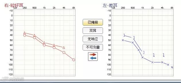 另外,老人是左耳听力属于极重度听力损失,右耳听力相对好点,现在老人只戴一只助听器且还是选择差的一侧耳佩戴,希望差耳戴助听器后能帮助听清楚说话,这是比较困难的,也是造成老人戴机不满意的第二个主要原因。